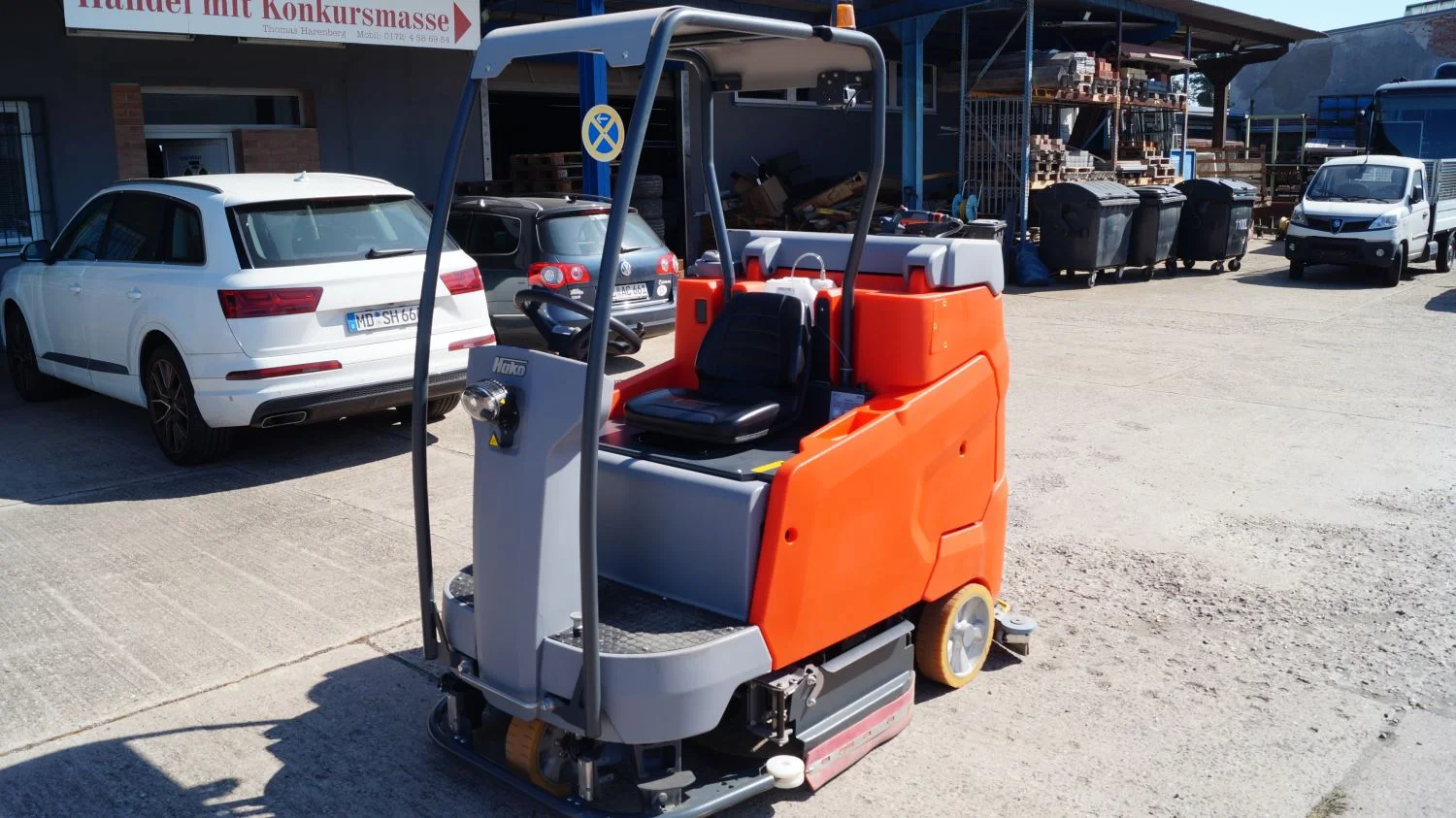 Scheuersaugmaschine Hako Scrubmaster B260 R, TB1230, Baujahr 2023, 50 Betriebsstunden, Versorgungsspannung: 36V, Arbeitsbreite der Bürsten (cm): 123, Saugbreite (cm): 129, Theoretische Flächenleistung (m²/h): 8600, Tankinhalt sauberes/schmutziges Wasser (l): 260/260, Anzahl der Bürsten (Stk.): 3, Gesamtgewicht, fahrbereit (kg): 1375, Steigfähigkeit (%): 15, mit Ladegerät, Fahrerschutzdach, Blu Spot vorn, Blitzlicht am FSD, Arbeitsscheinwerfer, Quick Connect System, On Board Dosiersystem, Spritzdüse inkl. Halterung, Ser.Nr.718200303774
